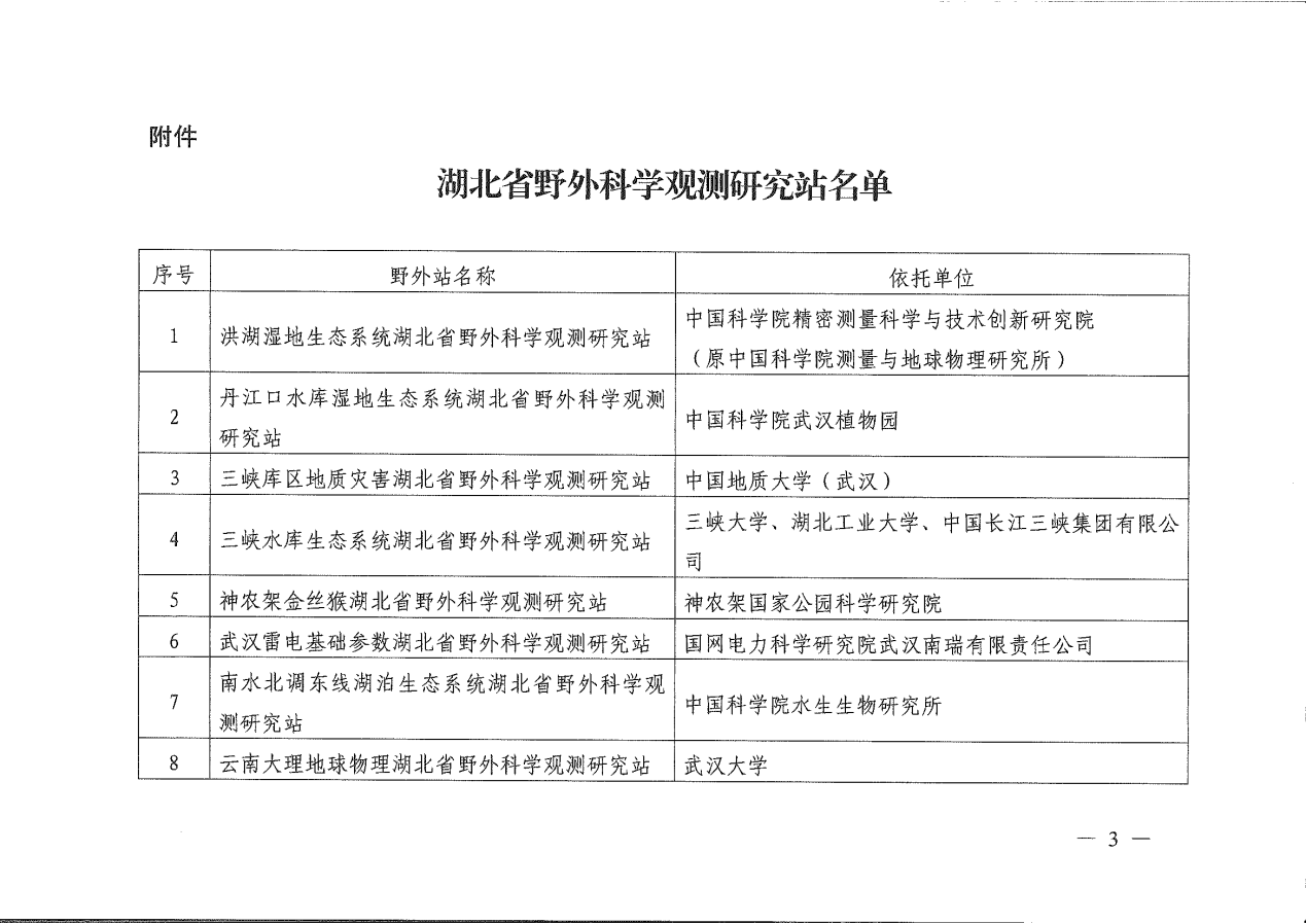 近日,湖北省科技廳公布了《省科技廳關于公布湖北省野外科學觀測研究站的通知》(鄂科技發(fā)基[2019]11號),由我校聯(lián)合湖北工業(yè)大學大學、中國長江三峽集團有限公司申報的“三峽水庫生態(tài)系統(tǒng)湖北省野外科學觀測研究站(以下簡稱“三峽生態(tài)站”)”獲批立項建設,我校是此次入圍的8家依托單位中的唯一省屬高校。